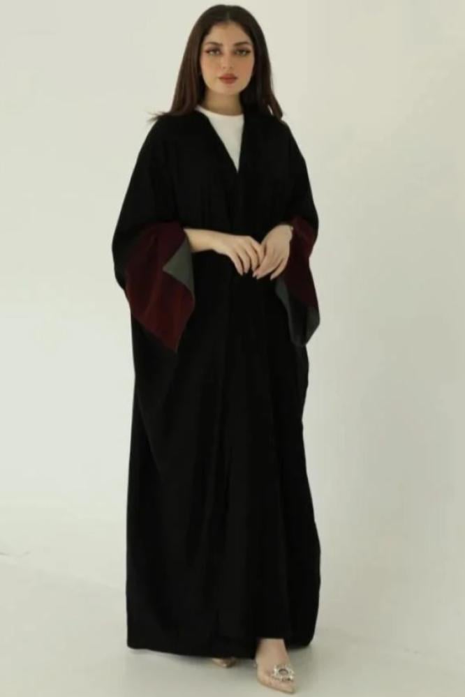 • مصنوعة عباية ترند من قماش كريب كوري يمنحك راحة وأناقة طوال اليوم.